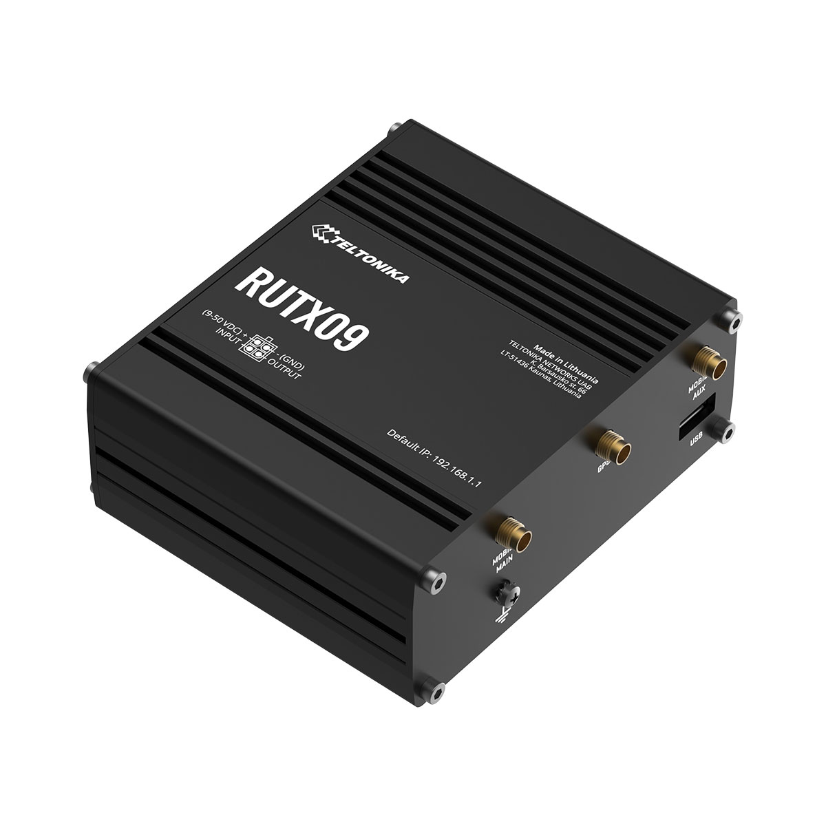 RUTX09 is LTE-A Cat 6 cellular IoT router with Dual-SIM, Carrier Aggregation, and 4 Gigabit Ethernet interfaces.