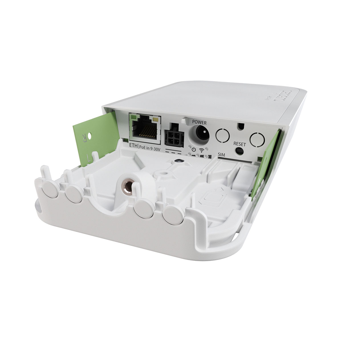 wAP LTE kit is a tiny weatherproof wireless access point for installation outside your house, in the garden, on your porch, or in any other challenging environment where you need a capable wireless connection on the tightest budget possible. It features an Ethernet port with passive PoE-in, but there are more ways to power this affordable access point: there’s also a standard DC jack and an automotive plug.