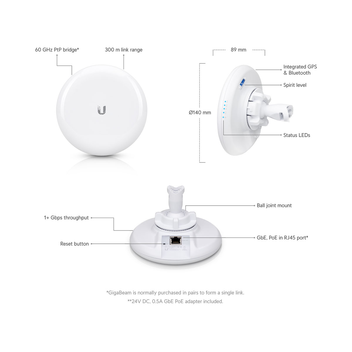 Ubiquiti GBE GigaBeam airMAX AC 60 GHz/5 GHz Radio, 1Gbps+