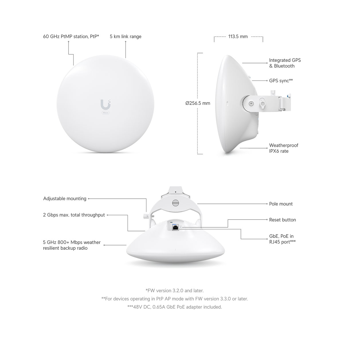 Ubiquiti specic features | Integrated 60 GHz radio, discovery protocol, Wave technology |