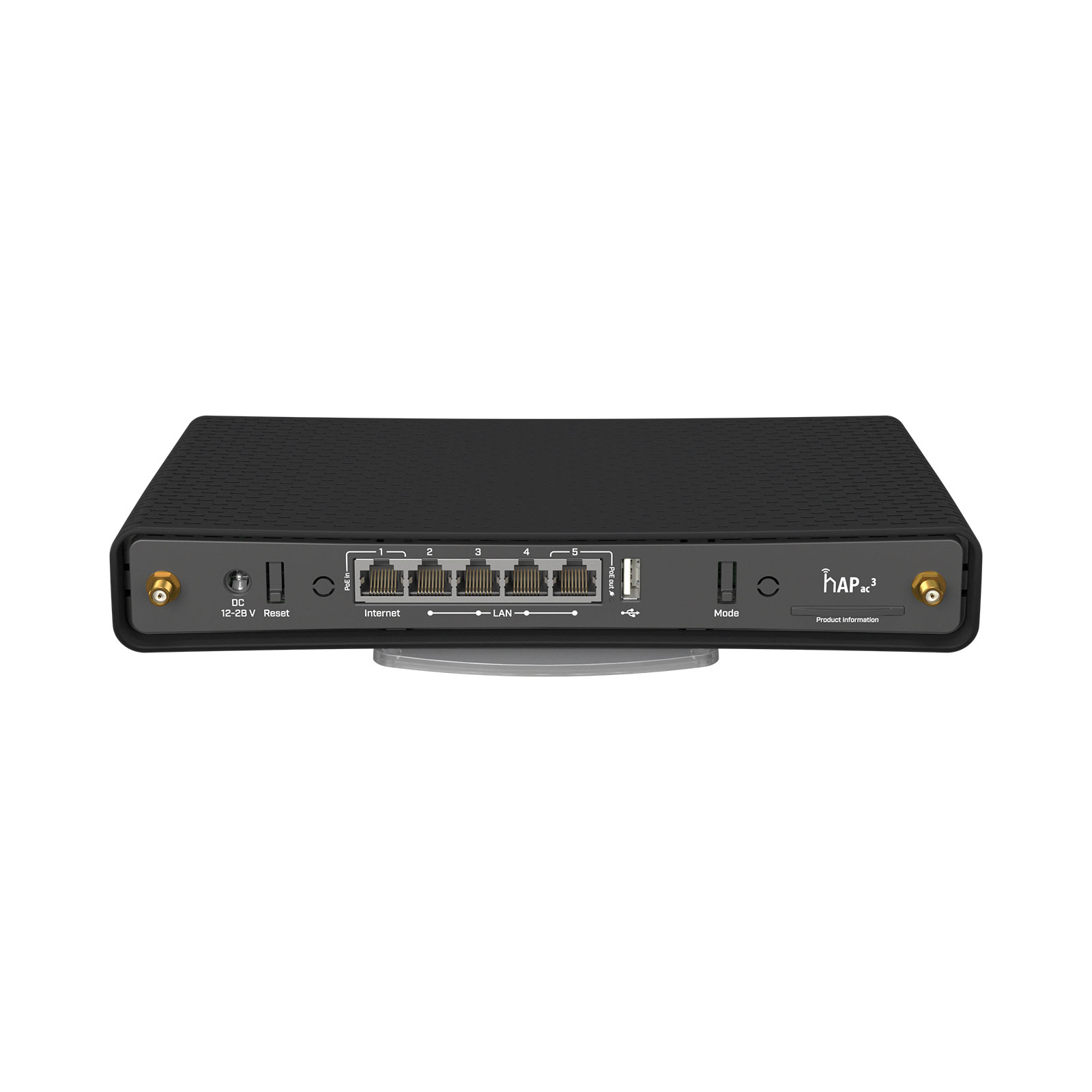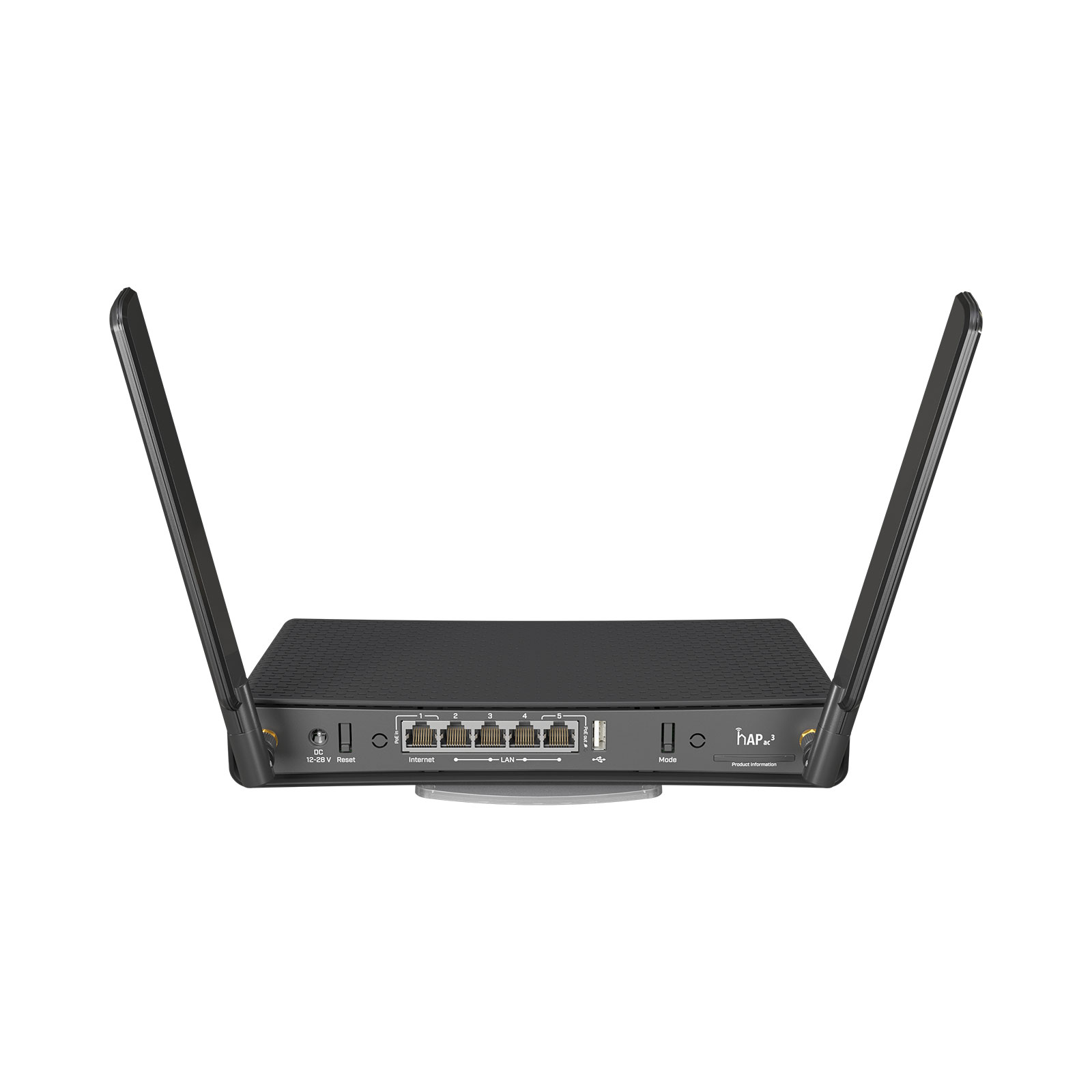 The RBD53iG-5HacD2HnD is a wireless dual-band router with 5 Gigabit Ethernet ports and external high gain antennas for more coverage. With 5 Gigabit Ethernet ports, 256 MB of RAM and quad-core CPU, hAP ac³ can satisfy even the biggest and most demanding households. With PoE support, it can power or be powered by other devices. There is a 128 MB NAND and a full-size USB port that you can use to add extra storage. The new enclosure allows mounting the device vertically or horizontally. A wall mount set is also included.