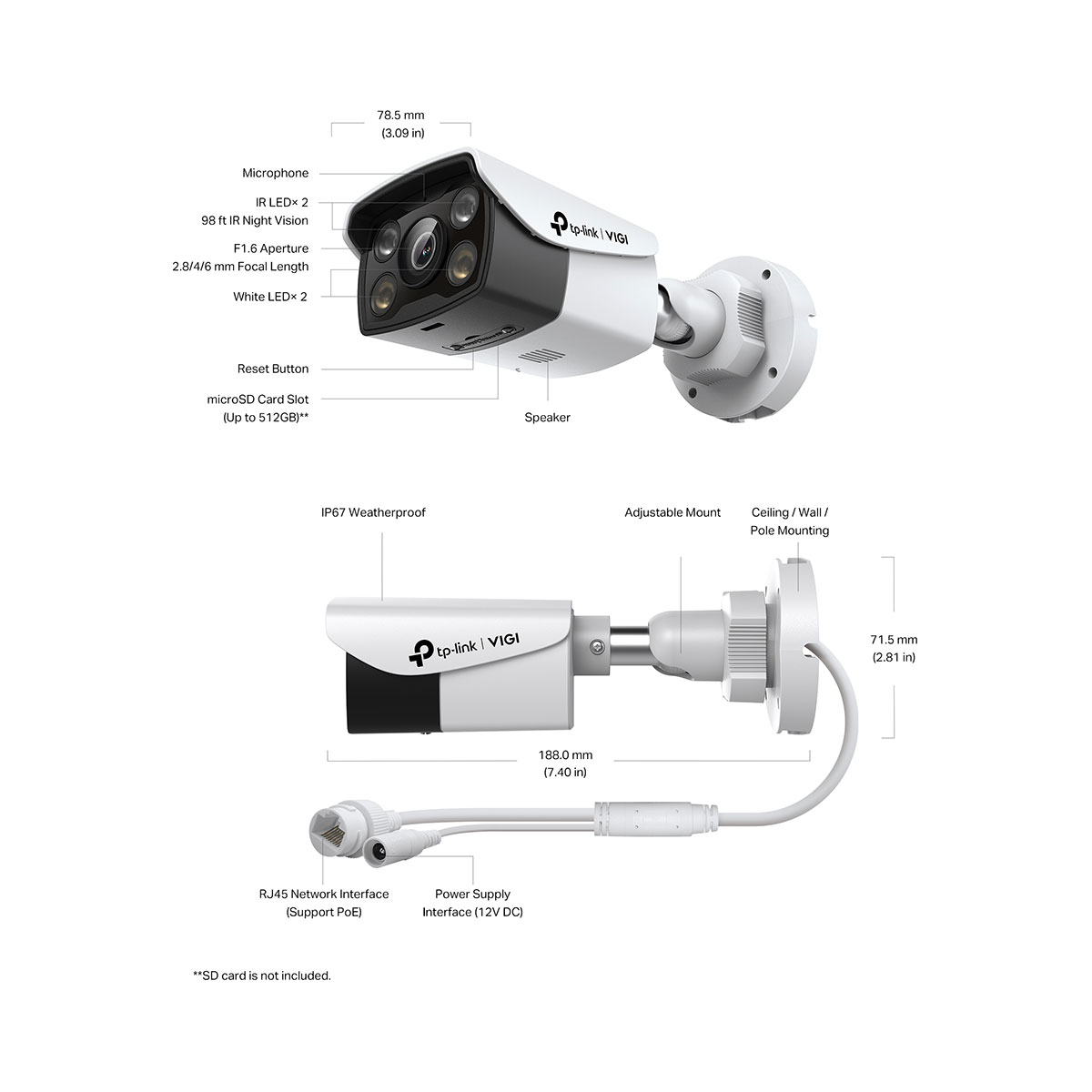 Take full control over your security via four management methods: the web UI, NVR UI, VIGI app, and VIGI Security Manager. Local storage is available for each methods, as well as onboard storage with SD card slot (up to 256 GB).