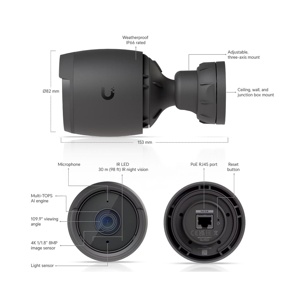 Ubiquiti UVC-G6-BULLET-B, UniFi G6 Bullet Camera, Black