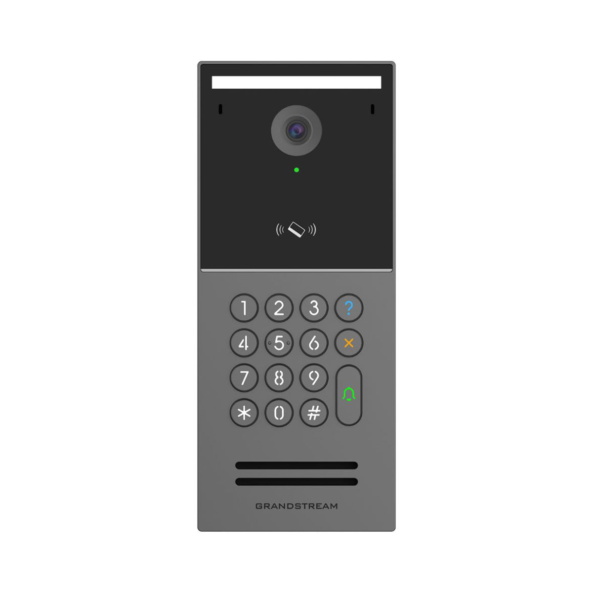 Grandstream GDS3725 is an indoor/outdoor IP video door station with keypad, RFID reader, and HD video camera. GDS3725 provides multiple methods for secure door entry. The familiar keypad lets users dial extensions or enter PIN codes. The RFID reader works with numerous types of 125 KHz and 13.56 MHz RFID cards and RFID keyfobs. It also supports NFC for use with compatible smartphones. GDS3725 supports Bluetooth to enable entry via a free access control smartphone app.