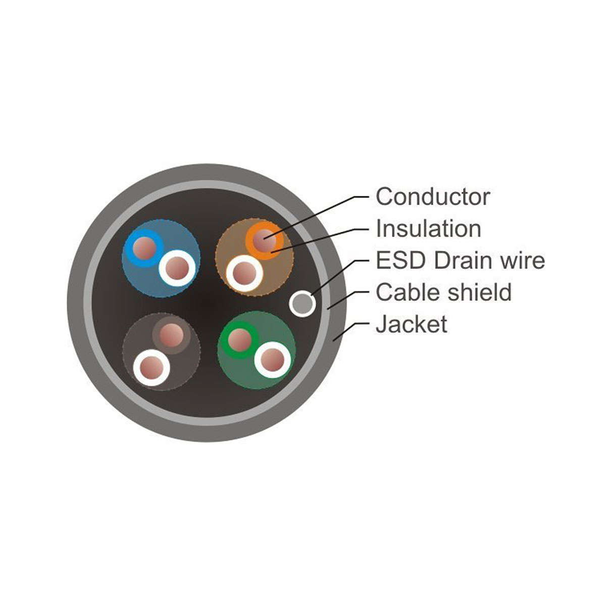 The cable is an shielded version with a PE outer sheath. The conductors of these cables are made of high quality copper wire, size AWG24. The cable is delivered on a spool.