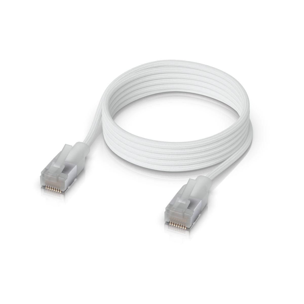 The ultra-thin Cat6a patch cable with transparent caps is specifically designed for use with switches from the UniFi Pro Max series and is ideal for 10Gbps networks. Thanks to its lighting effects, the cable interactively displays the status of Ethernet ports. The cable’s outer diameter is just 3mm, and the total length, including connectors, is 1m. As is typical for UniFi solutions, the cable is supplied in an elegant white color and is intended for indoor use.