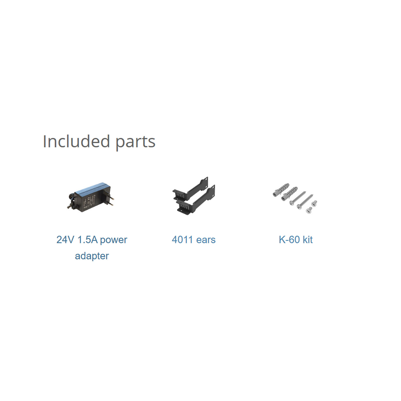 Included parts  • 24V 1.5A power adapter