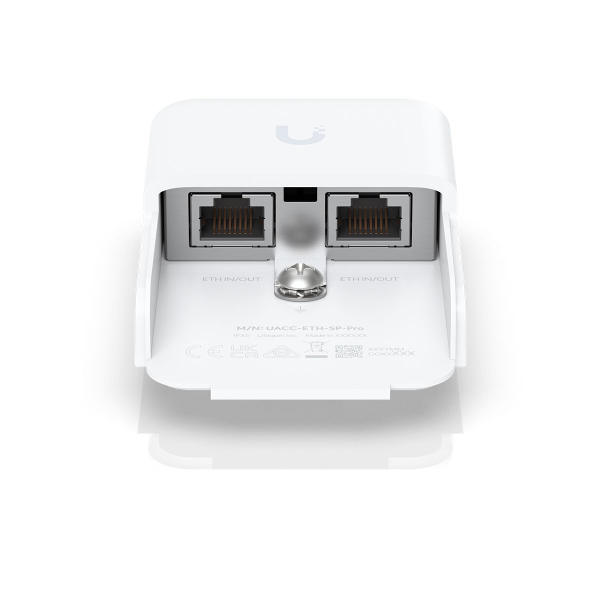 Ubiquiti UACC-ETH-SP-Pro is a surge protector from Ubiquiti designed for outdoor units. It provides effective device protection (including PoE-powered devices) with connection speeds of up to 10 Gbps. It redirects harmful electrostatic discharges and surges directly into the UACC-ETH-SP-Pro, ensuring safe grounding. Your network devices will always remain protected.