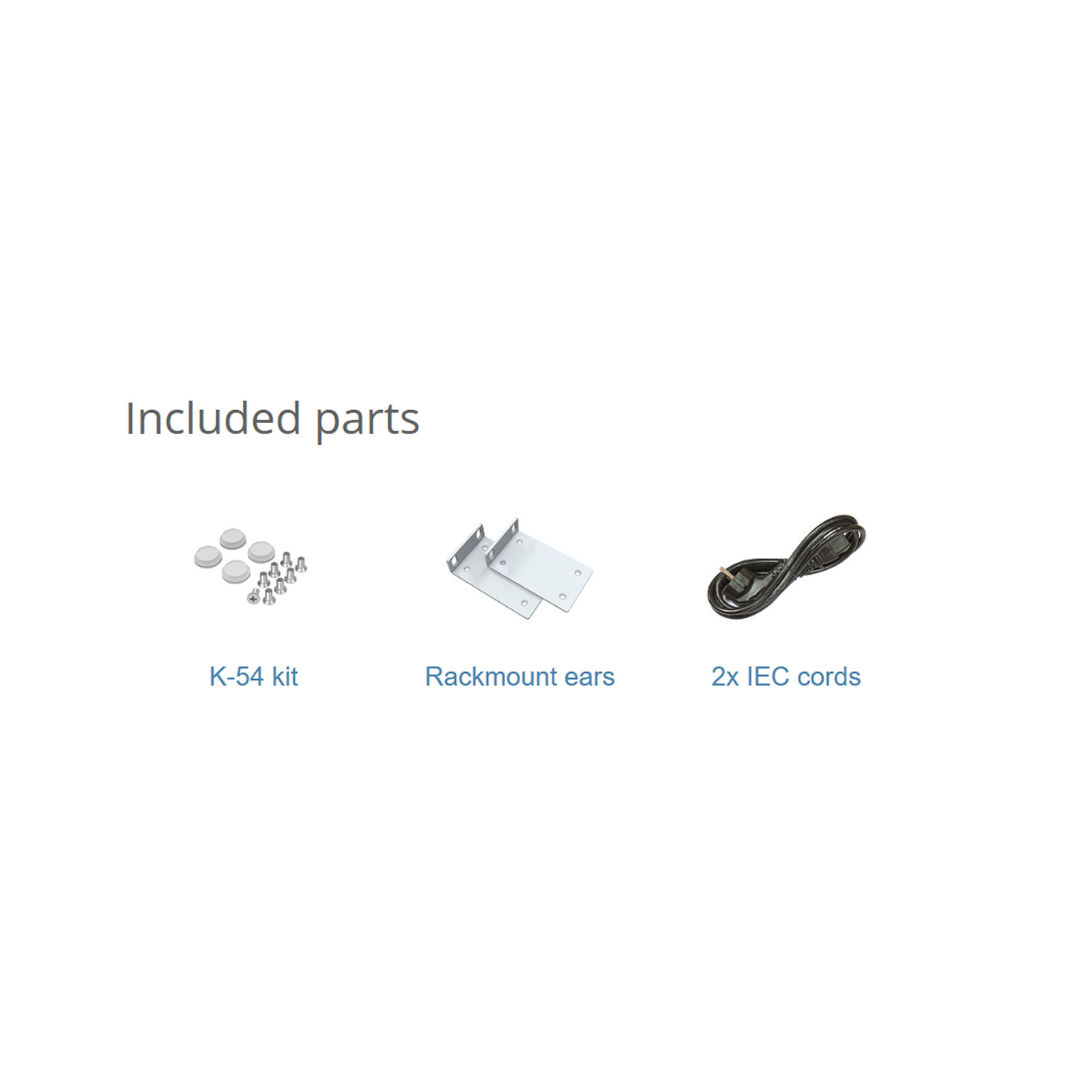 The device comes in a 1U rackmount case with two 100-240 V power supplies with failover functionality. A RJ45 console port is available for management and debugging, and a mode button can be customised to execute any RouterOS commands.