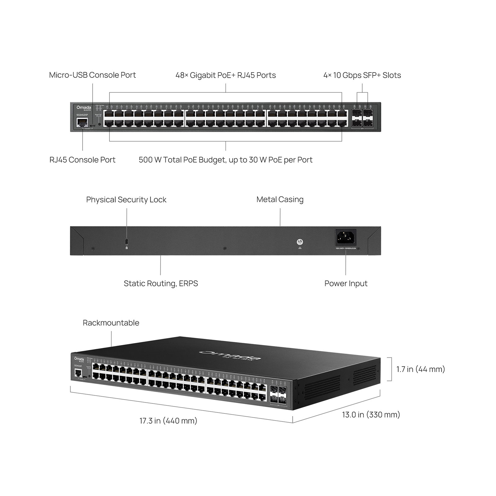• PoE+ Output with 500 W Power Budget: Design your optimal network layout with forty-eight 802.3af/at PoE+ gigabit ports.*