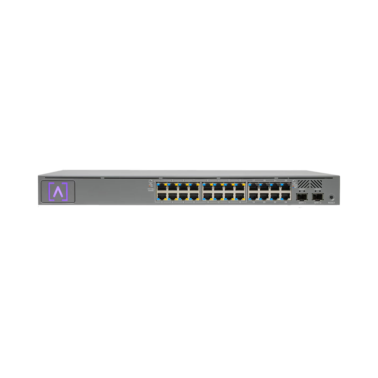 The Alta Labs switches feature PoE+ connectivity with a number of ports capable of providing up to 30 Watts of power per port. The switches support the 802.3at PoE+ standard and are backwards compatible with the 802.3af PoE standard. The S24‑PoE offers sixteen PoE+ ports with a PoE budget of up to 240 Watts. Power your Alta Labs Access Points and other devices that support 802.3at or 802.3af standards.