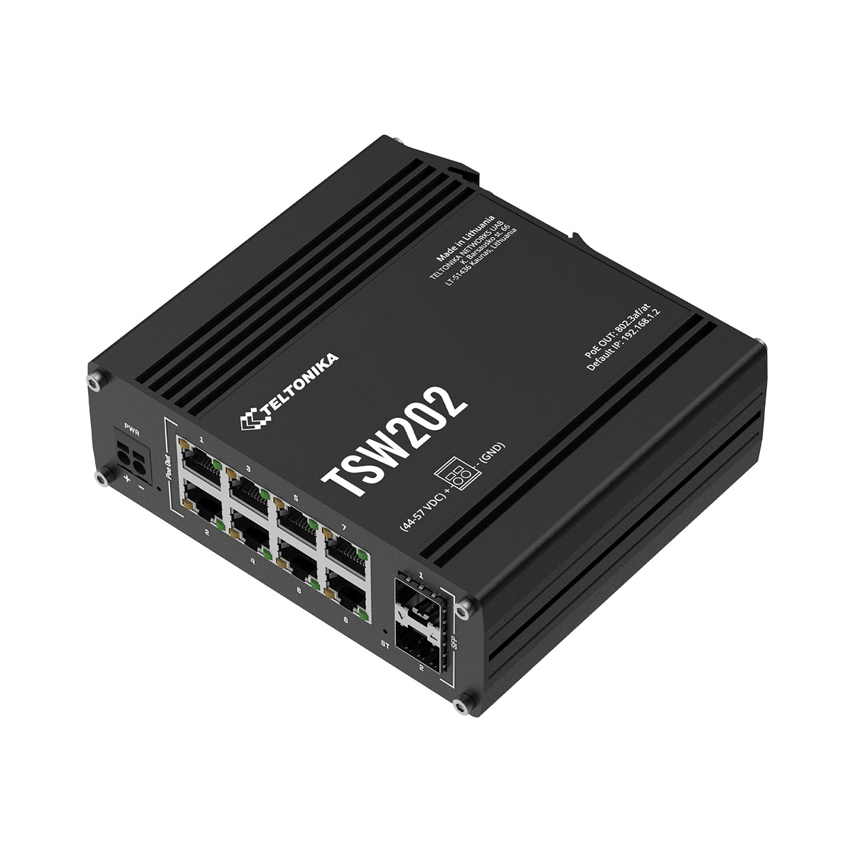 TSW202 is a managed PoE+ Ethernet switch, designed to provide granular network management capabilities while centralising power distribution. This PoE+ switch enables flexibility over management and power supply and supports protocols, including EtherNet/IP, PROFINET, and MRP. The TSW202 has 2 SFP ports and 8 Gigabit Ethernet ports providing 30 W of power each.