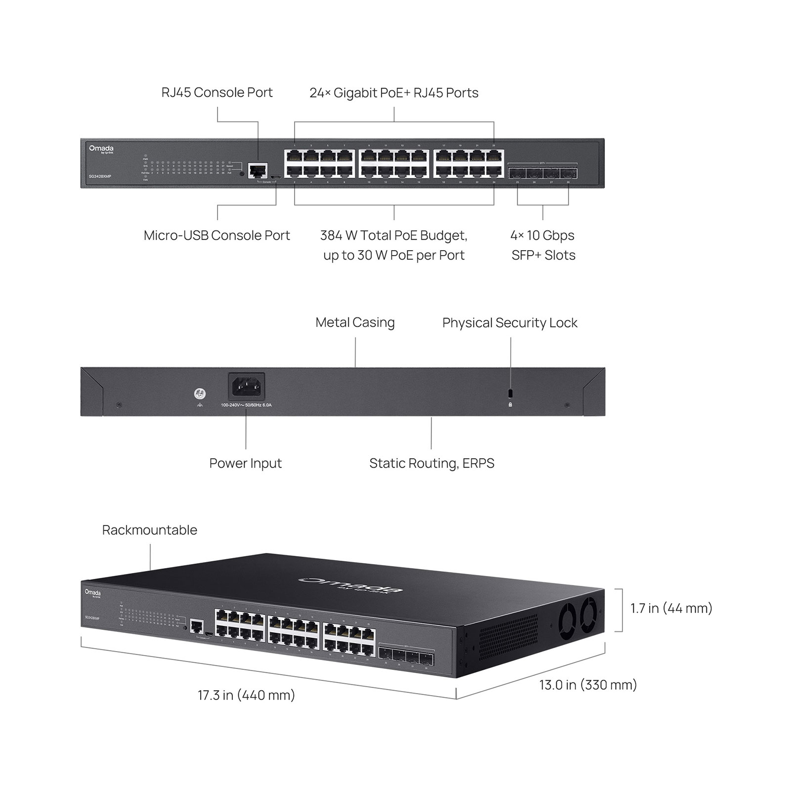 TP-LINK SG3428XMP V3.2 Omada 24-Port Gigabit and 4-Port 10GE SFP+ L2+ Managed Switch with 24-Port PoE+