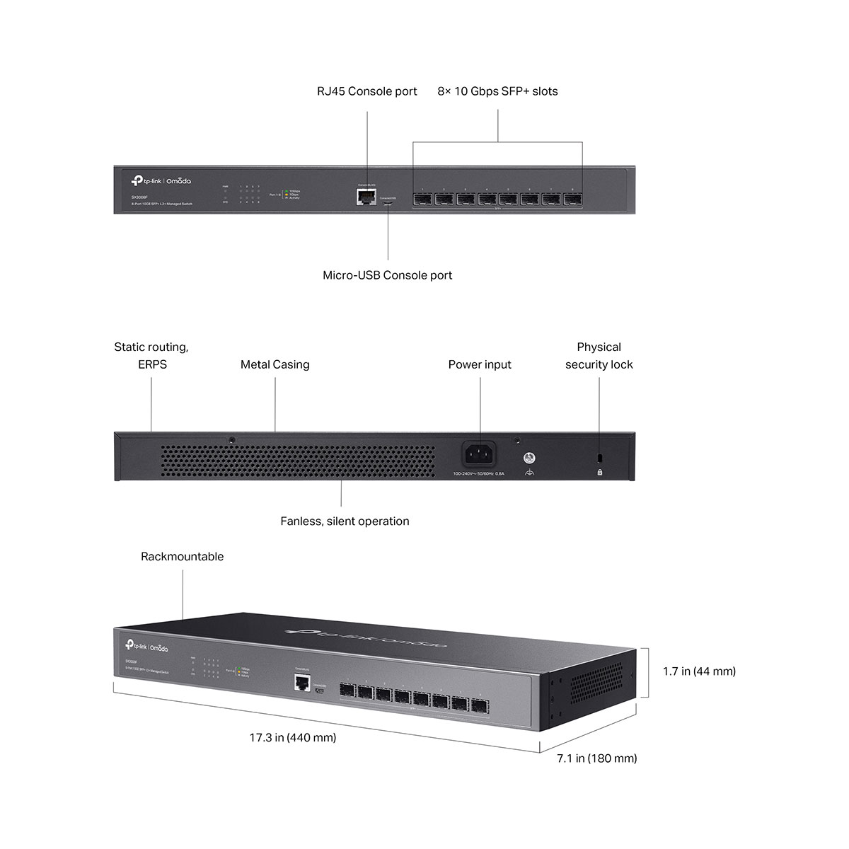 • 10G Lightning-Fast Connections: 8x 10 Gbps SFP+ Ports enable high-bandwidth connectivity and non-blocking 160 Gbps switching capacity.