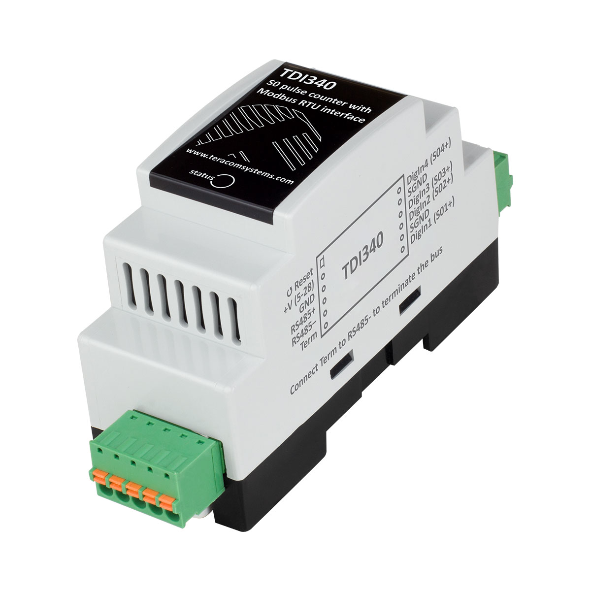 TDI340 is an S0 pulse counter with MODBUS RTU interface. It has 4 isolated digital inputs. The inputs complying with the S0 standard 62053-31. The counter works in polling or edge modes. In the edge mode, it can count on rising, falling, and both edges.