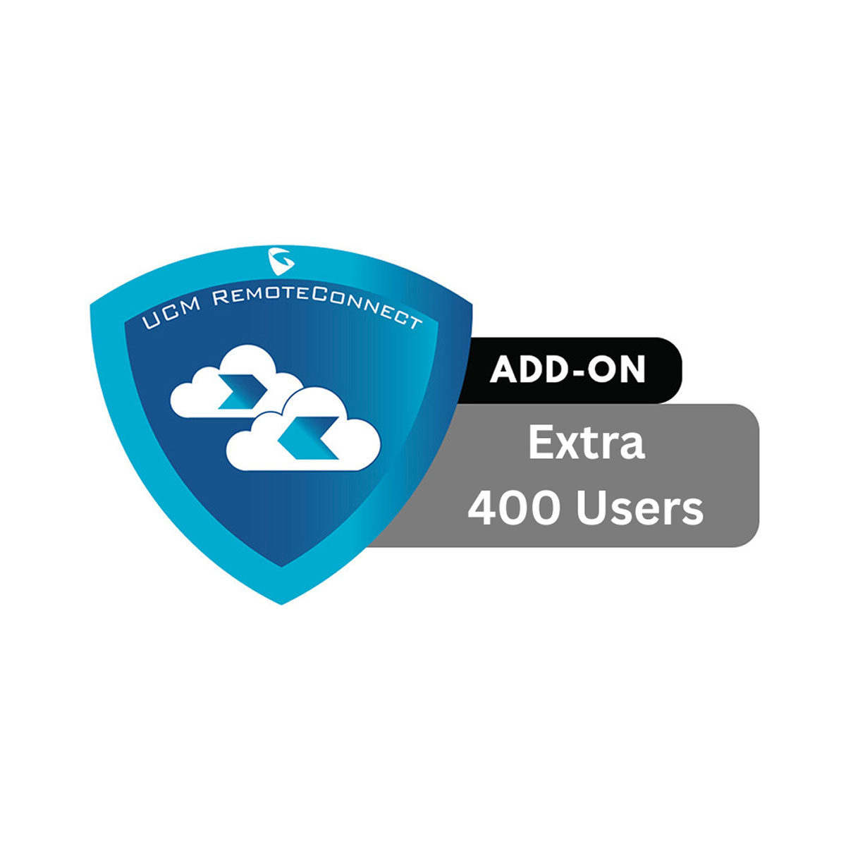 Adds 400 additional registered remote users/extensions to your existing UCM RemoteConnect (UCMRC) plan.