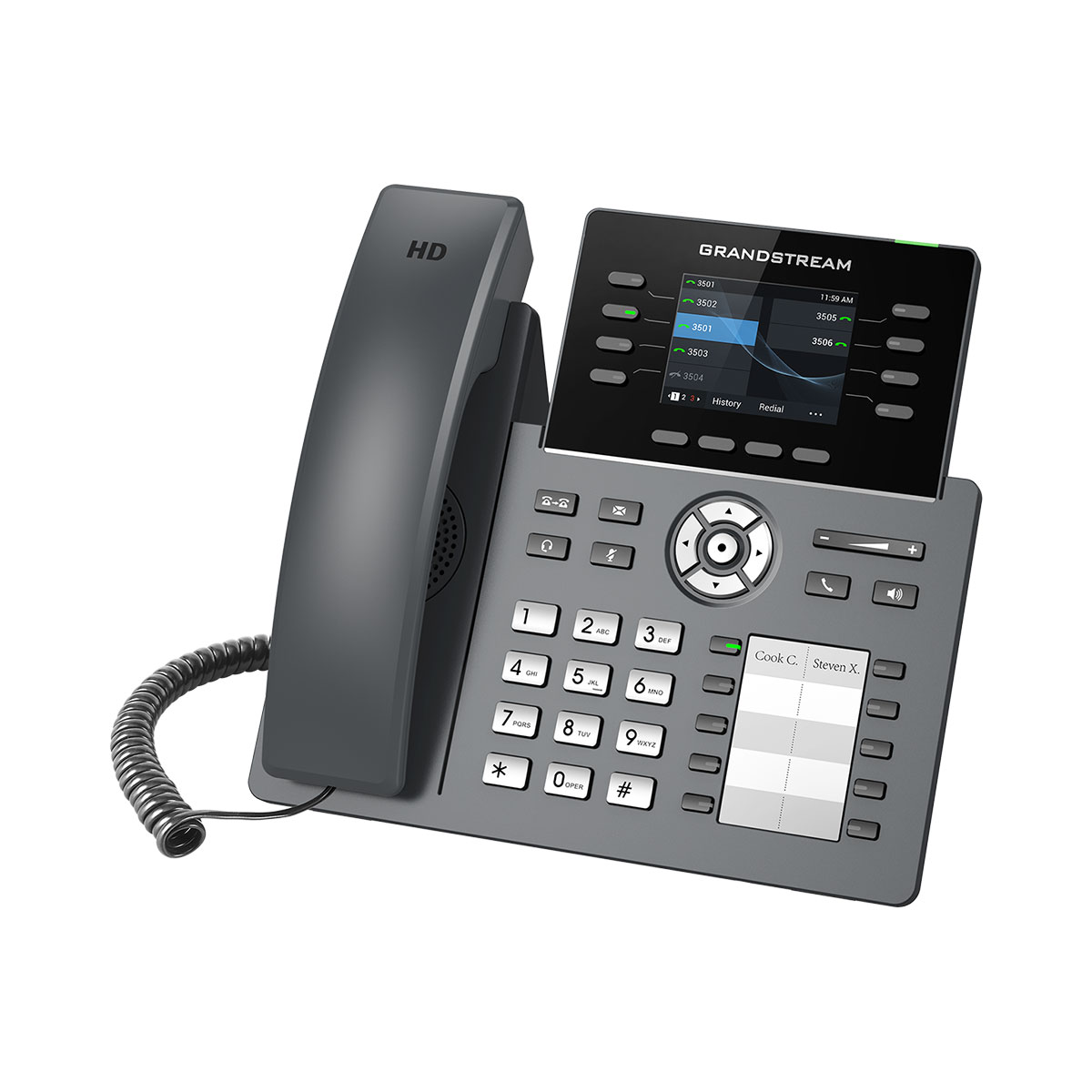 Part of the GRP series of Carrier-Grade IP Phones, the GRP2634 is a professional 8-line model designed with zero-touch provisioning for mass deployment and easy management. It features a sleek design and a suite of next-generation features including: 5-way voice conferencing to maximize productivity, integrated PoE & Wi-Fi, full HD audio on both the speaker and handset to allow users to communicate with the utmost clarity, EHS support for Plantronics headsets and USB to support Grandstream’s GUV Series Headsets. The GRP series includes carrier-grade security features to provide enterprise-level security, including secure boot, dual firmware images and encrypted data storage. For cloud provisioning and centralized management, the GRP2634 is supported by Grandstream’s Device Management System (GDMS), which provides a centralized interface to configure, provision, manage and monitor deployments of Grandstream endpoints. With 32 Virtual Multi-Purpose Keys (VPK) and 10 Multi-Purpose Keys (MPK), the GRP2634 is the perfect choice for busy professionals and receptionists who need to manage high call volumes, with advanced functionality. Designed for easy deployment by enterprises, service providers and other high-volume markets, the GRP2634 offers an easy-to-use and easy-to-deploy voice endpoint.