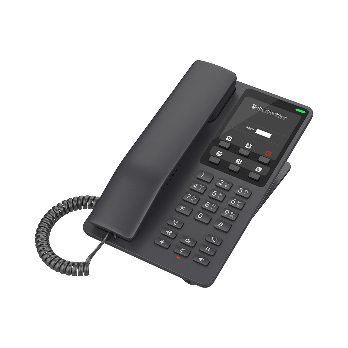 The GHP621 is an easy-to-use IP phone for any hotel room that can be programmed and customized based on the needs of hotels and their guests.It provides an HD speaker, 2 SIP accounts/lines, 6 programmable keys, 10 speed dial keys, 3-way voice conferencing, supports the full-band OPUS voice codec and provides an advanced jitterresilience algorithm that tolerates up to 30% packet loss without impacting voice quality. The GHP621 is supported by Grandstream’s Device Management System (GDMS), which provides a centralized interface to configure, provision, manage and monitor deployments of Grandstream endpoints. GHP621 IP phones can be installed on desktop or wall-mounted and can be powered by PoE (GHP621) and USB Type-C charger. Thanks to a sleek and compact design, the GHP621 is the ideal fit for not only hotels but also apartments, dormitories, hospitals, retail and much more.