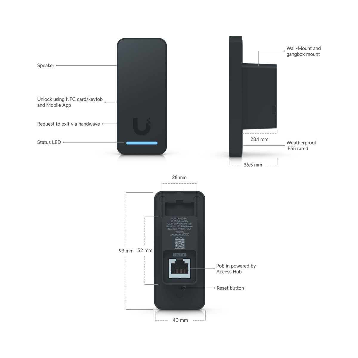 Ubiquiti UA-G2-BLACK UniFi Access Reader G2, Black