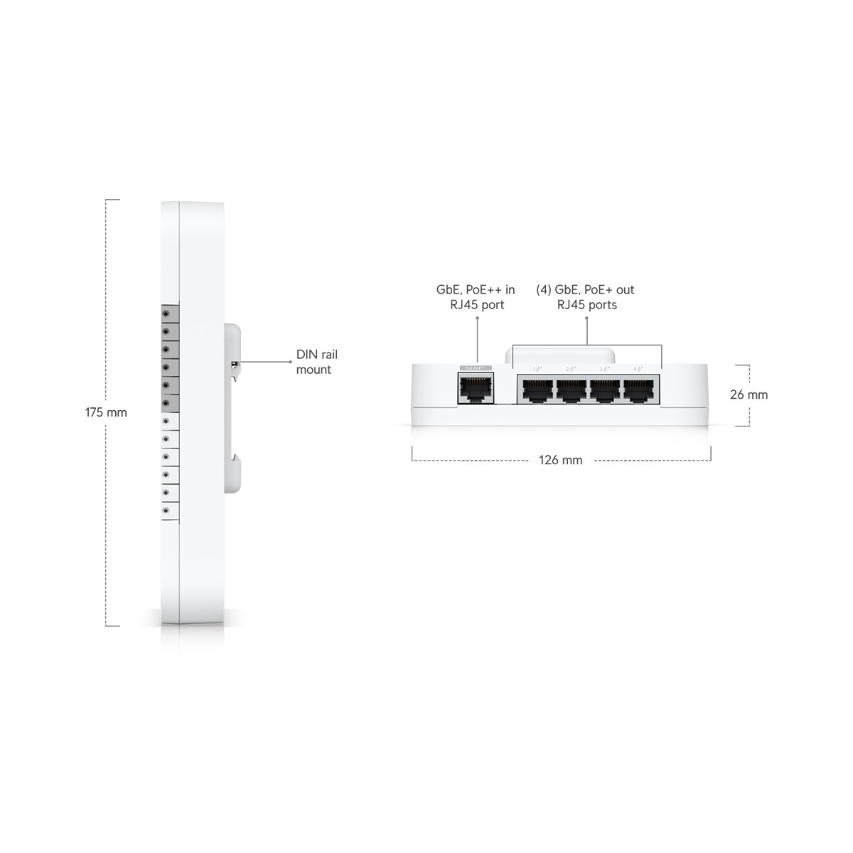 (4) PoE outputs, 50V DC, 30W per port