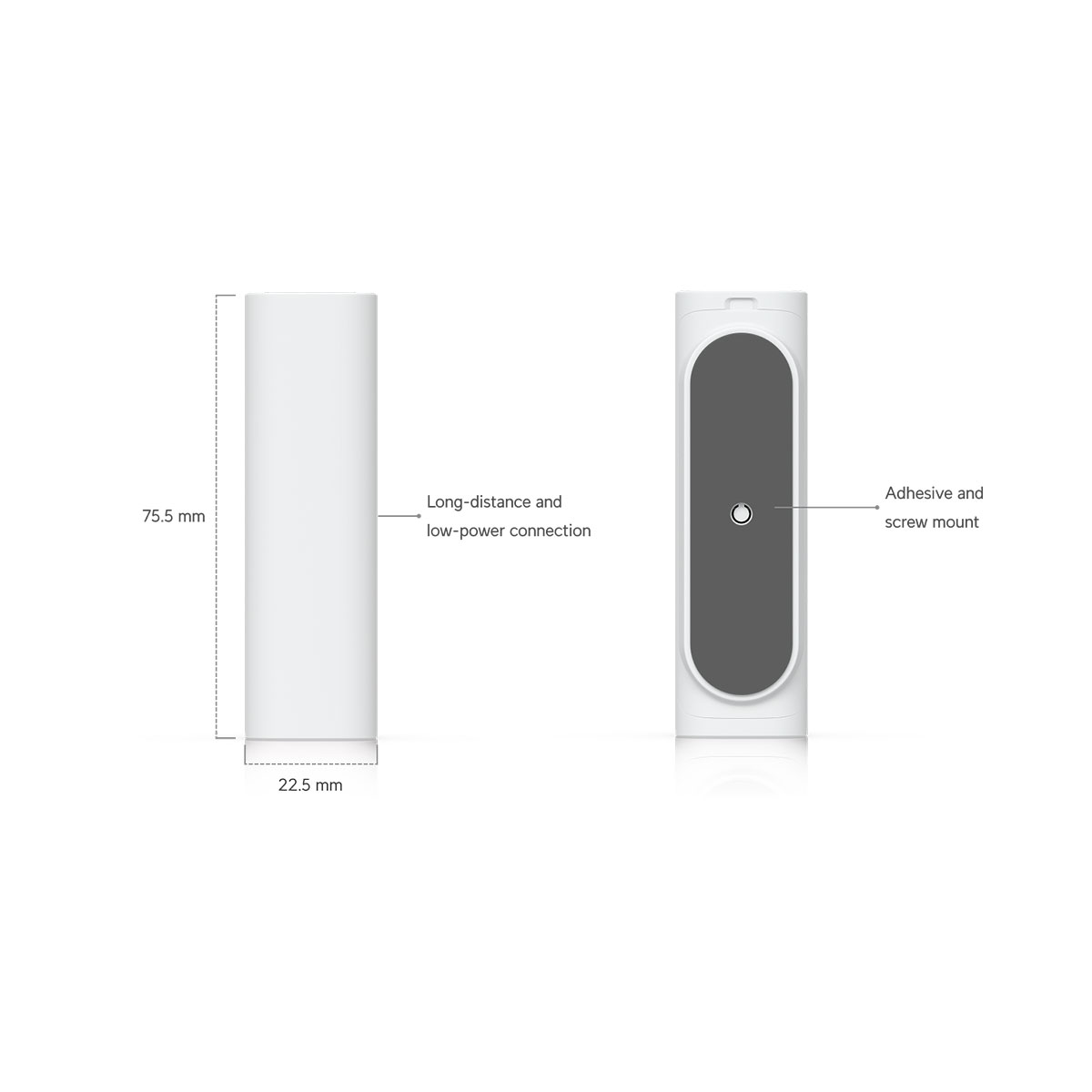 The wireless entry sensor with SuperLink technology is designed for precise monitoring of door or window openings and closings. Thanks to the advanced reed switch, it provides accurate detection of changes in the magnetic field and immediately sends alerts to the UniFi Protect system. Wireless SuperLink technology with a range of up to 2 km ensures exceptionally stable data transmission even in challenging conditions. The sensor communicates on frequencies of 865.1–869.5 MHz, allowing its deployment in various types of facilities — from homes to commercial spaces.