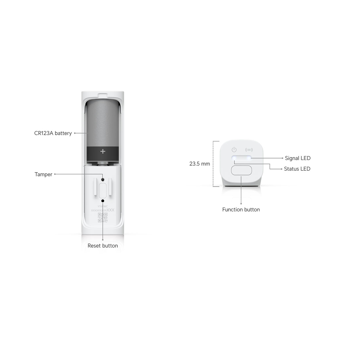 | Buttons | (1) Factory reset (1) Function button (1) Tamper switch |