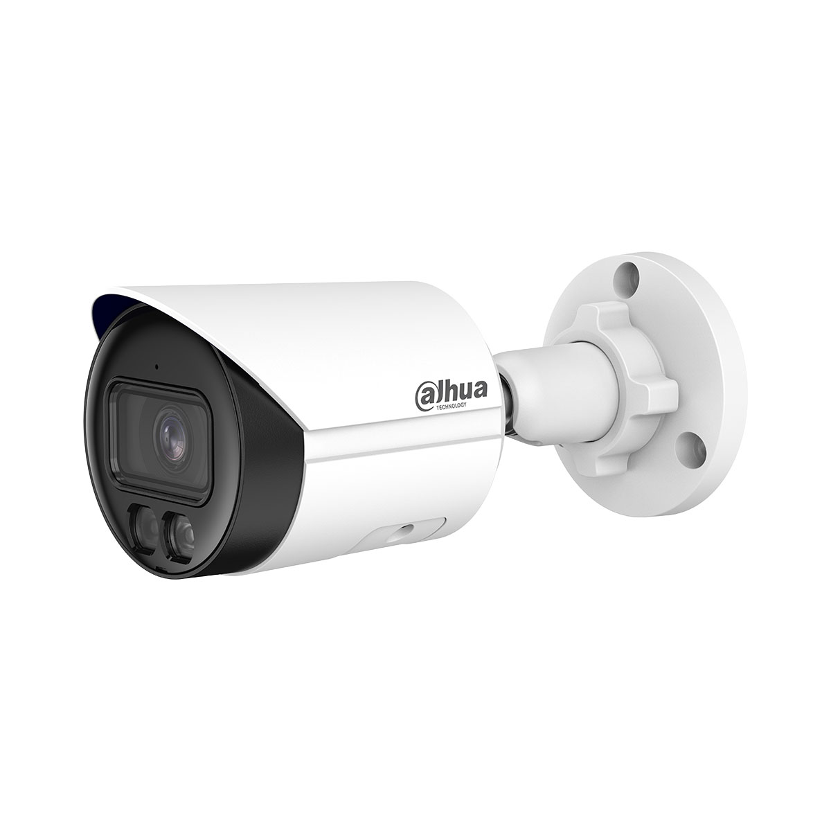 Dahua Smart Dual Light technology adopts smart algorithm to detect targets. Usually, the IR illuminator is on at night; when the target appears in the monitoring area, the white light is on, and the camera records the full-color video and information of key events. That is, the camera links snapshot and video with full-color image. When the target is out of the monitoring area, the white light is off and the IR illuminator is on, which reduces light pollution efficiently.
