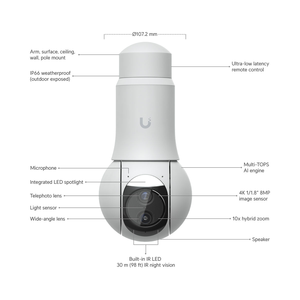 Ubiquiti UVC-G6-PTZ-W, UniFi Protect, Outdoor 4K Dual-Lens Camera With 10x Hybrid Zoom, White