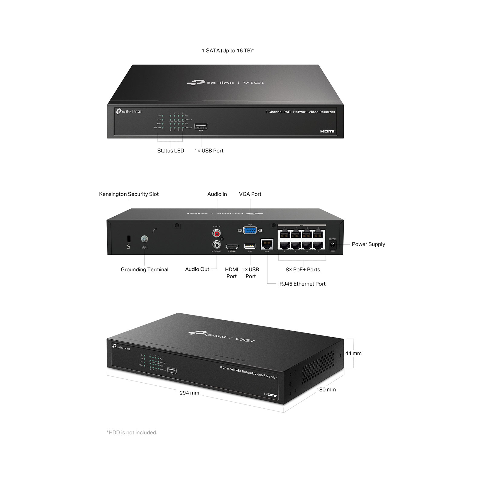 TP-LINK VIGI NVR1008H-8MP V1.2 8 Channel PoE+ Network Video Recorder