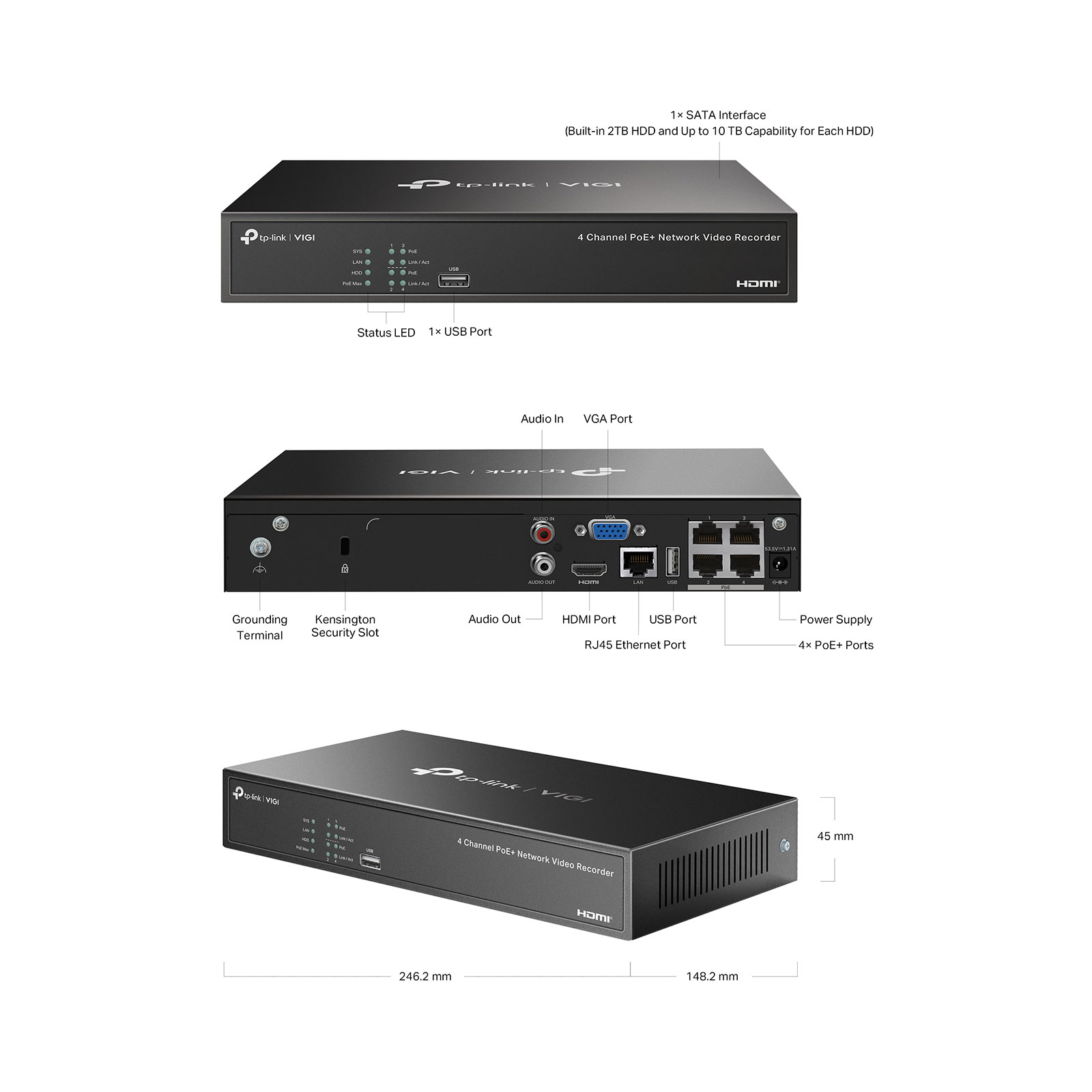 TP-LINK VIGI NVR1004H-4P V1 4 Channel PoE+ Network Video Recorder