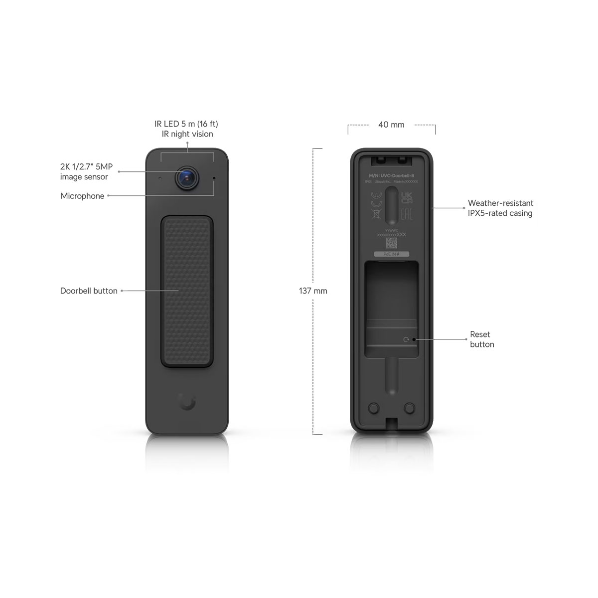 Ubiquiti UVC-DOORBELL-LITE-B, UniFi Video Doorbell With Two-Way Audio PoE, Black