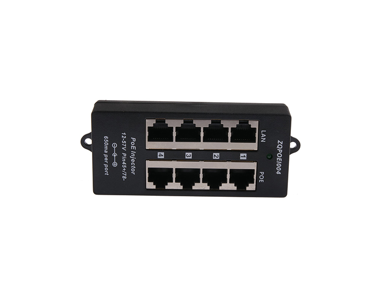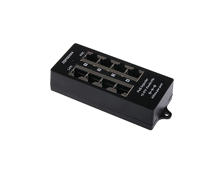 POE-BOX4 is a passive PoE injector suitable for powering up to 4 devices. Connectors marked "LAN" connect Ethernet ports without power supply eg switch, to the opposite side of "POE" connect devices using passive PoE. For powering PoE injector uses two pairs of Ethernet cable: 4,5 (positive pole) and 7,8 (negative pole). The power supply is connected via a standard 2.1/5.5mm power connector. The passive PoE injector can be used in the range of 12 to 57V DC with a max. current of 1000mA / port.