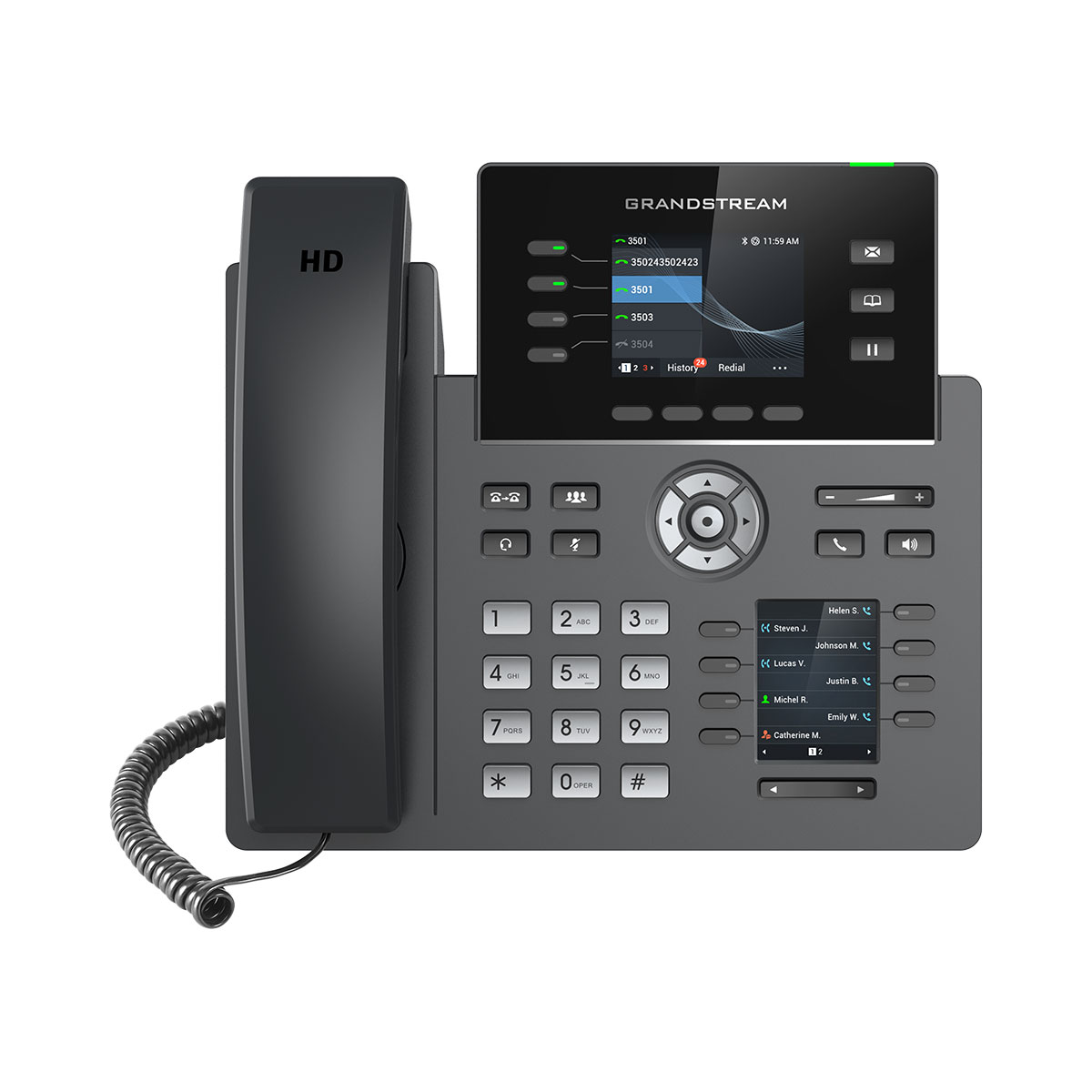 The GRP2614 features a sleek design and a suite of next-generation features including dual LCD screens with 40 virtual multi-purpose keys (VPKs), integrated WiFi, Bluetooth support, dual Gigabit ports and more. This device features a color LCD with swappable face plates to allow for easy logo customization. The GRP series includes carrier-grade security features to provide enterprise-level security, including secure boot, dual firmware images and encrypted data storage. For cloud provisioning and centralized management, the GRP2614 is supported by Grandstream’s Device Management System (GDMS), which provides a centralized interface to configure, provision, manage and monitor deployments of Grandstream endpoints.