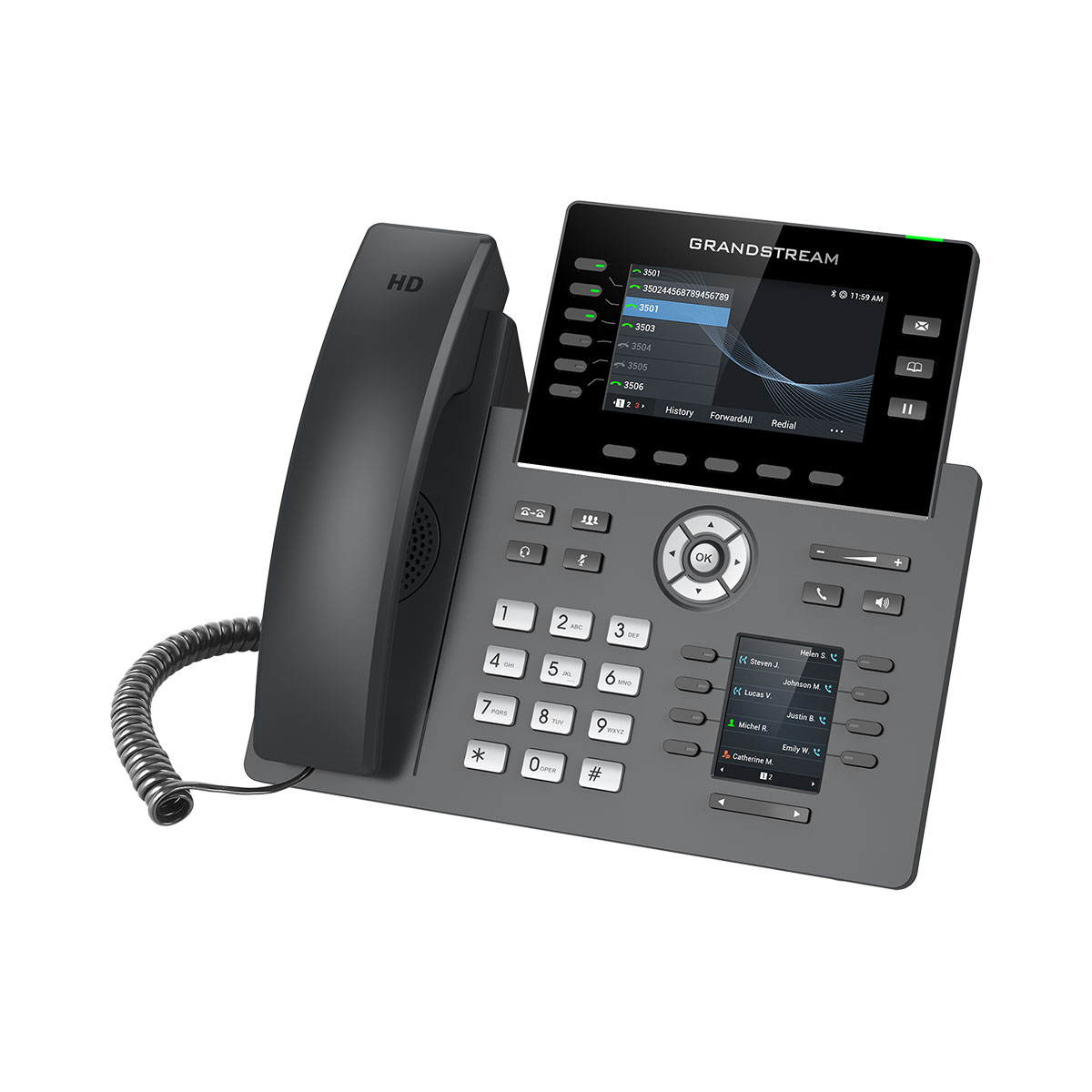The GRP2616 is a high-end carrier-grade IP phone designed with zero-touch provisioning for mass deployment and easy management. It supports 6 lines and 6 SIP accounts while featuring a sleek design and a suite of next-generation features including integrated Wi-Fi, Bluetooth support, 48 virtual multi-purpose keys (MPKs), dual Gigabit ports and more. This device features a 4.3 inch color LCD screen with swappable face plates to allow for easy logo customization and an additional 2.4 inch display screen. For cloud provisioning and centralized management, the GRP2616 is supported by Grandstream’s Device Management System (GDMS), which provides a centralized interface to configure, provision, manage and monitor deployments of Grandstream endpoints.