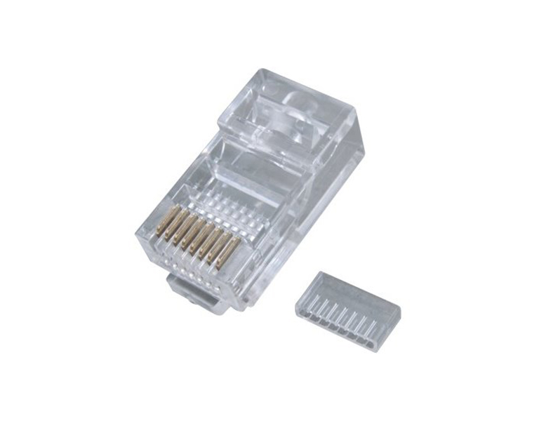 Connector UTP RJ45, category Cat.6, ethernet support 1000 Base-T, 8p8c, cable, gilded, pleated.