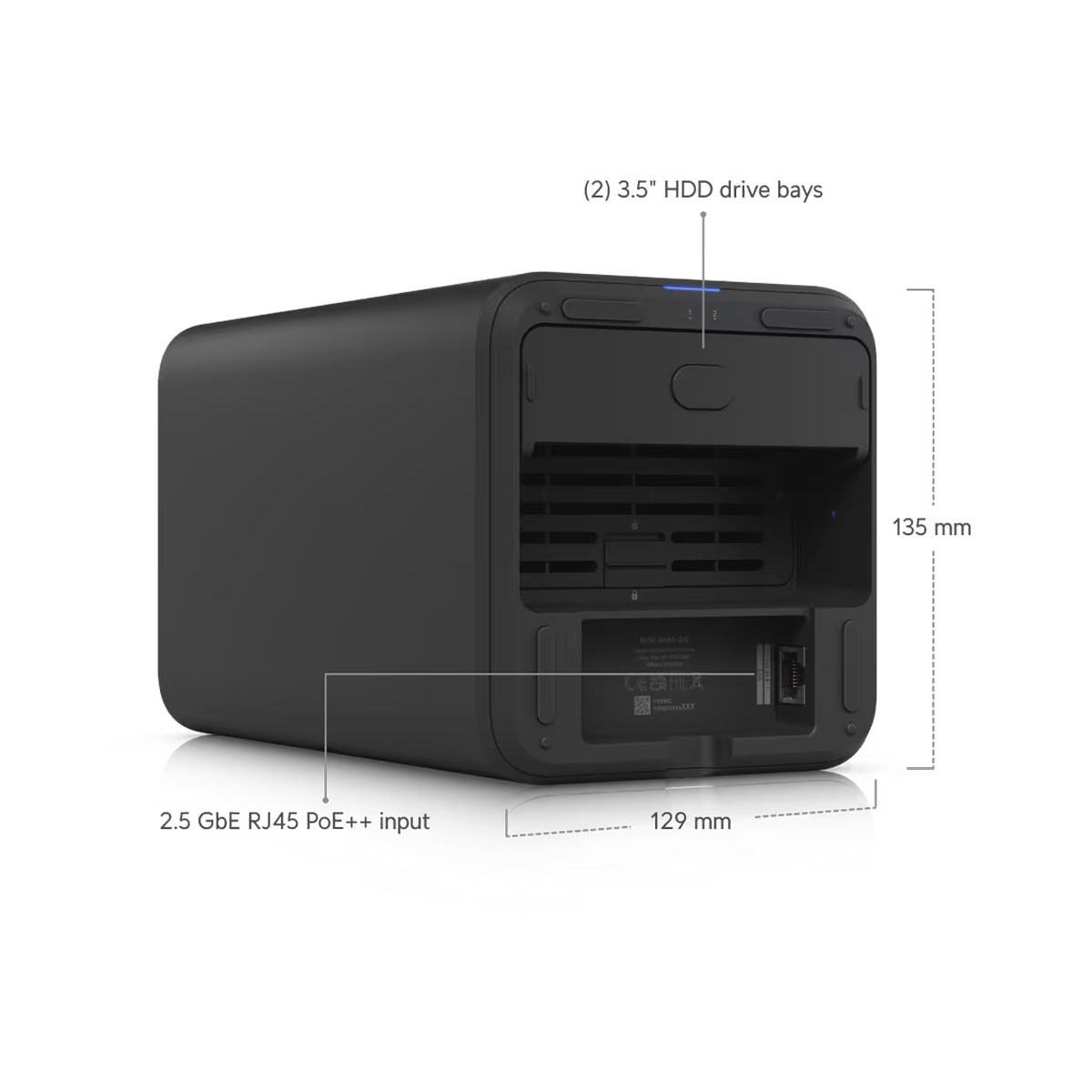 Ubiquiti UNAS-2-B, UniFi Network Attached Storage, 2 x 3.5'' HDD Bays, 2.5 GbE, USB-C, PoE++ Power, Black