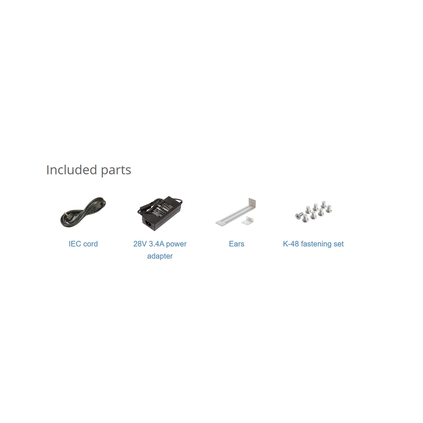 CRS112-8P-4S-IN is equipped with 12 independent switching ports. 28V 3.4A power supply is already included in the box. There is secondary DC jack on the back of the enclosure that supports 48-57V power supply (not included, can be purchased separately). CRS112-8P-4S-IN can power 802.3af/at devices if 48-57V DC input is used (unit will automatically detect and provide correct power to devices). Max current is 1A per port if input voltage is 18-28V, 450mA if 48-57V. Total limit is 2.8A@24V and 1.4A@48-57V.