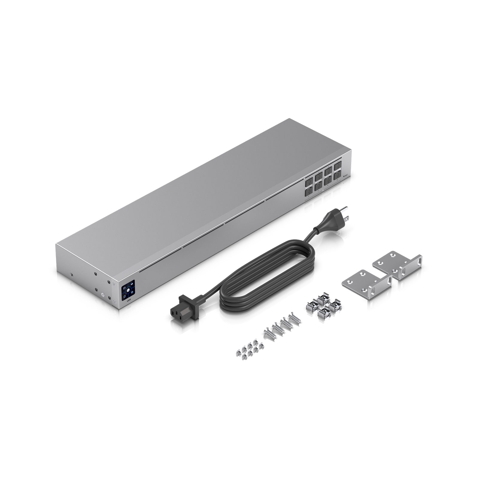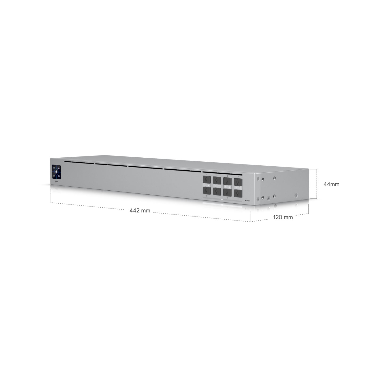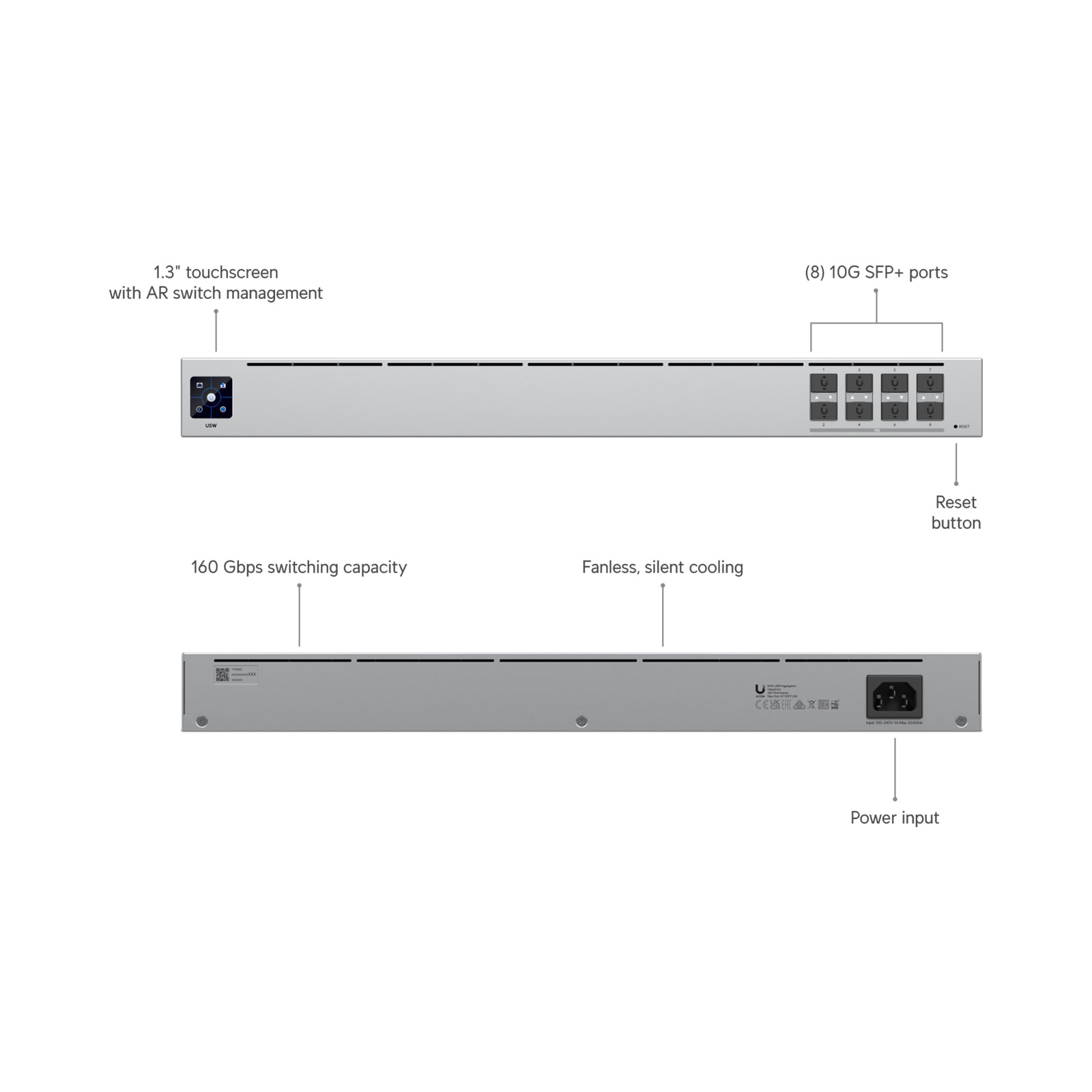 | • (8) 10G SFP+ Ports • 160 Gbps switching capacity • 1.3" Touchscreen with AR switch management • Fanless, 4.7" depth compact enclosure • 1U Rackmountable (kit included) • Managed by UniFi Network Controller Managed by UniFi Network Controller version: 5.14.12 or higher. |
