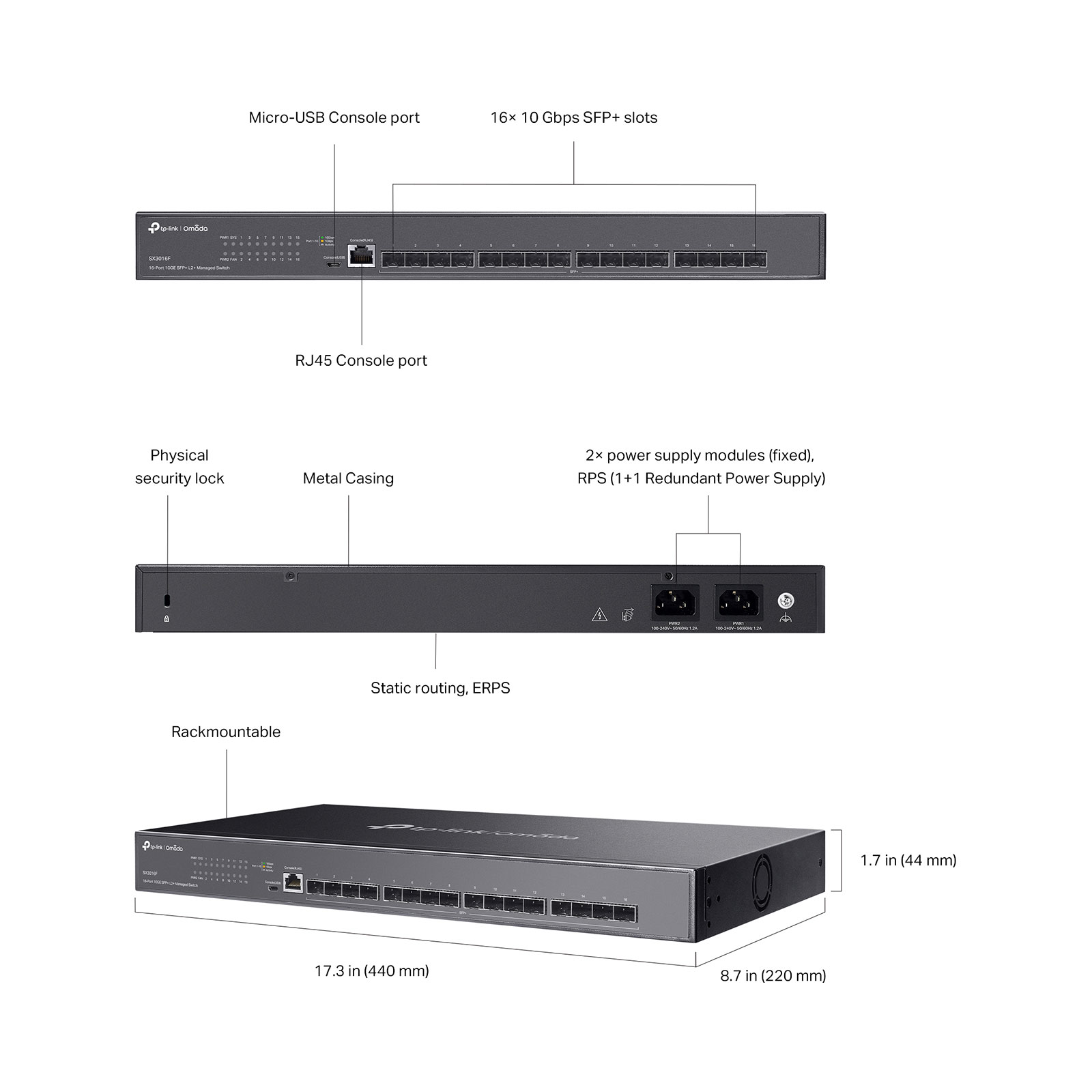 • 16x Full 10GE SFP+ Slots: Lightning-fast full 10 Gbps SFP+ slots provide high-bandwidth aggregation connectivity and non-blocking 320 Gbps switching capacity.