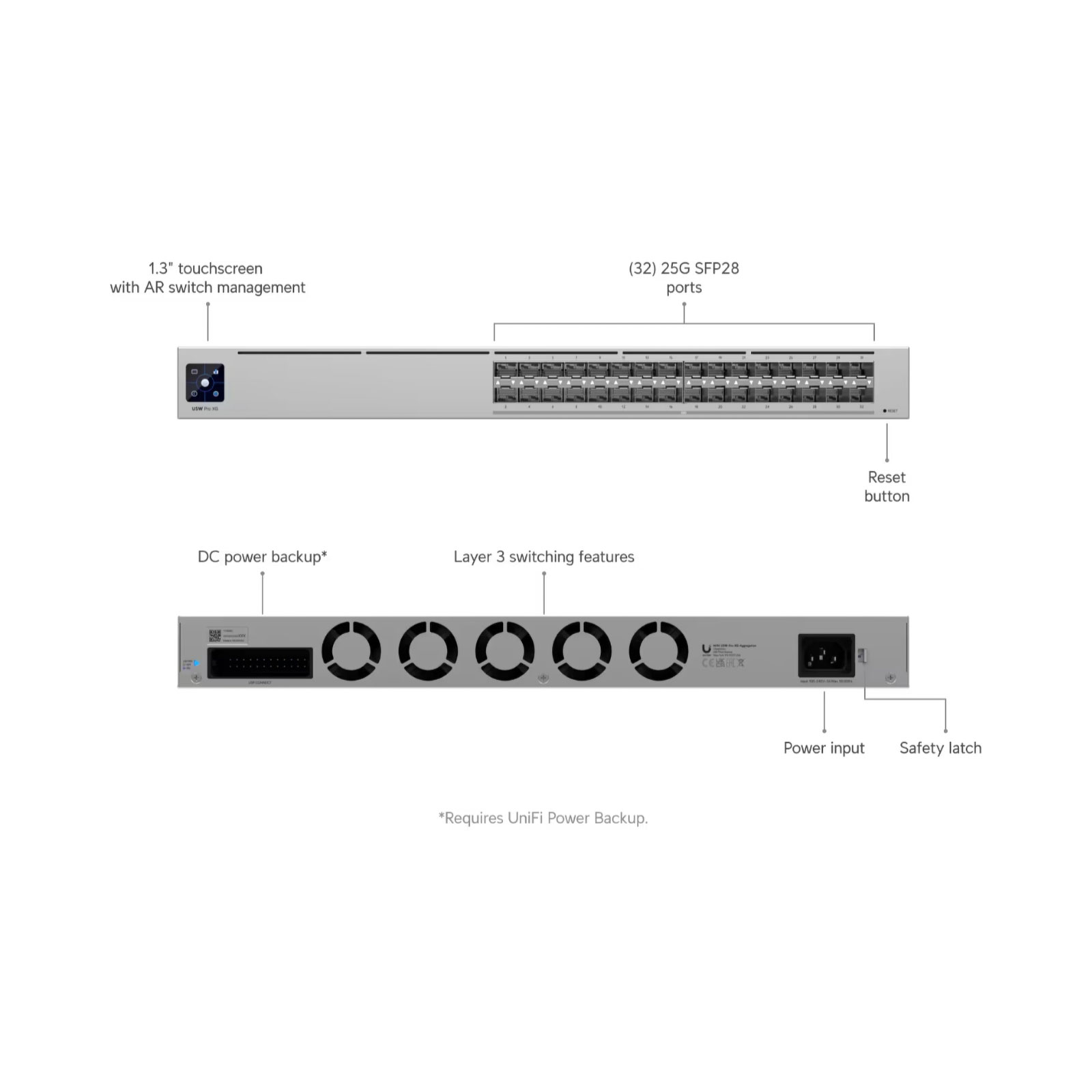 Ubiquiti USW-Pro-XG-Aggregation, Professional-Grade 32-Port, Layer 3 Etherlighting, 25G SFP28 Connections