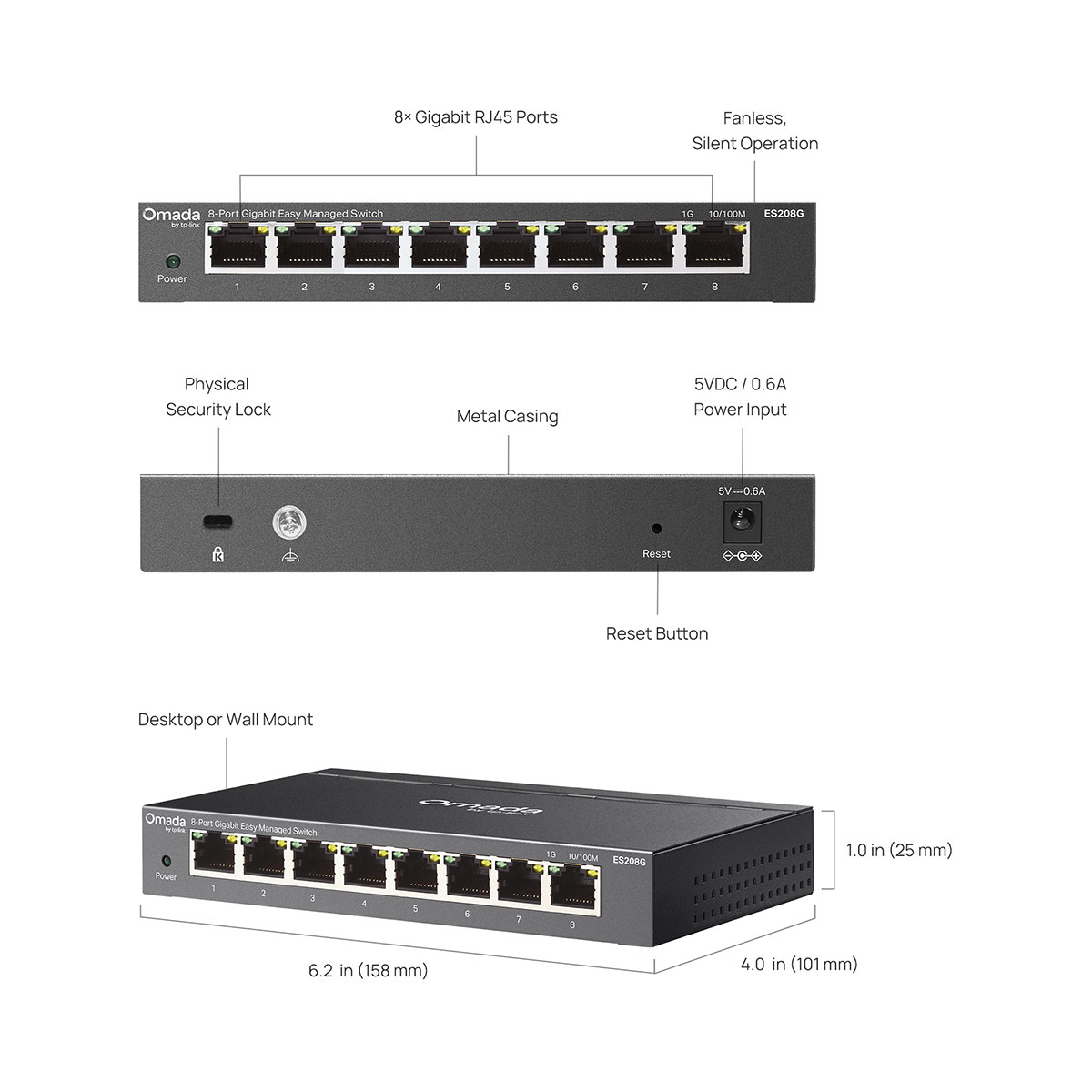 TP-LINK ES208G V1, Omada 8-Port Gigabit Easy Managed Switch