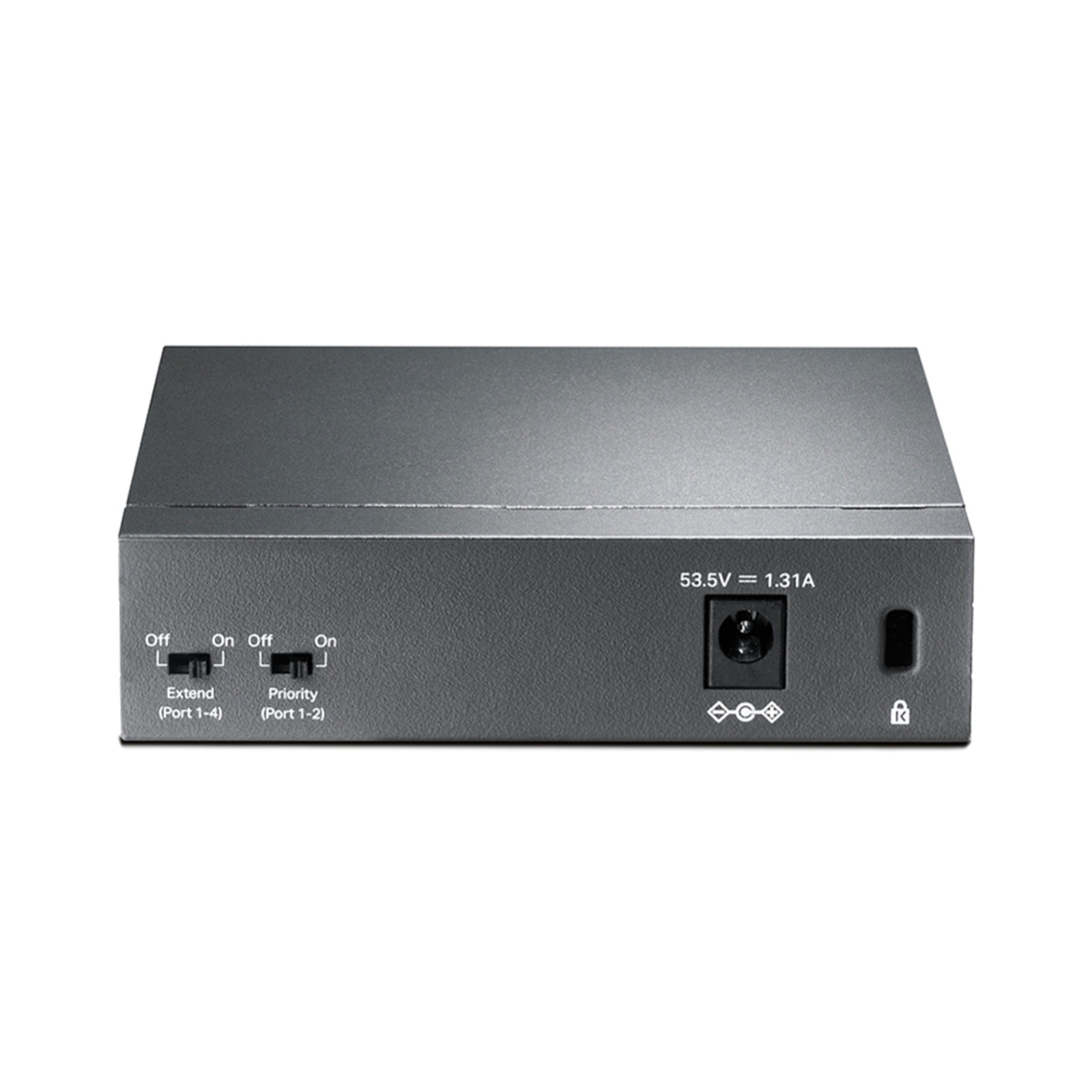 TL-SF1005P is a 5 10/100Mbps ports unmanaged switch that requires no configuration and provides 4 PoE (Power over Ethernet) ports. It can automatically detect and supply power with all IEEE 802.3af/at compliant Powered Devices (PDs). In this situation, the electrical power is transmitted along with data in one single cable allowing you to expand your network to where there are no power lines or outlets, where you wish to fix devices such as APs, IP Cameras or IP Phones, etc.