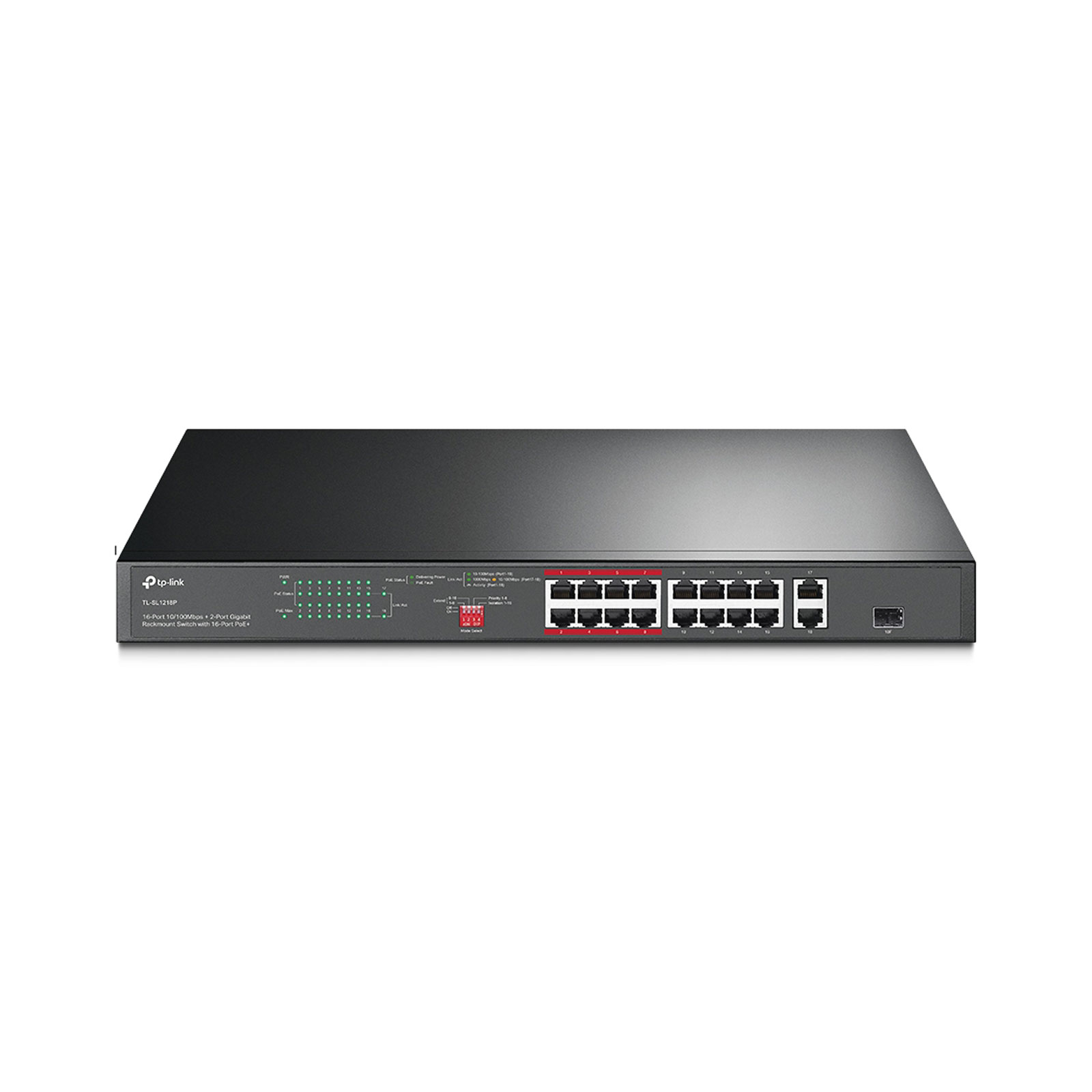 TP-LINK TL-SL1218P V4.2 16-Port 10/100 Mbps + 2-Port Gigabit Rackmount Switch with 16-Port PoE+