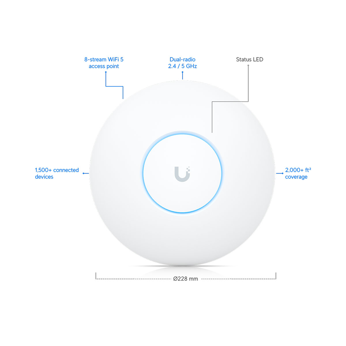 Easy Mounting Its sleek design seamlessly integrates into any environment (all accessories included) and is compatible with existing UAP-AC-PRO mounts.