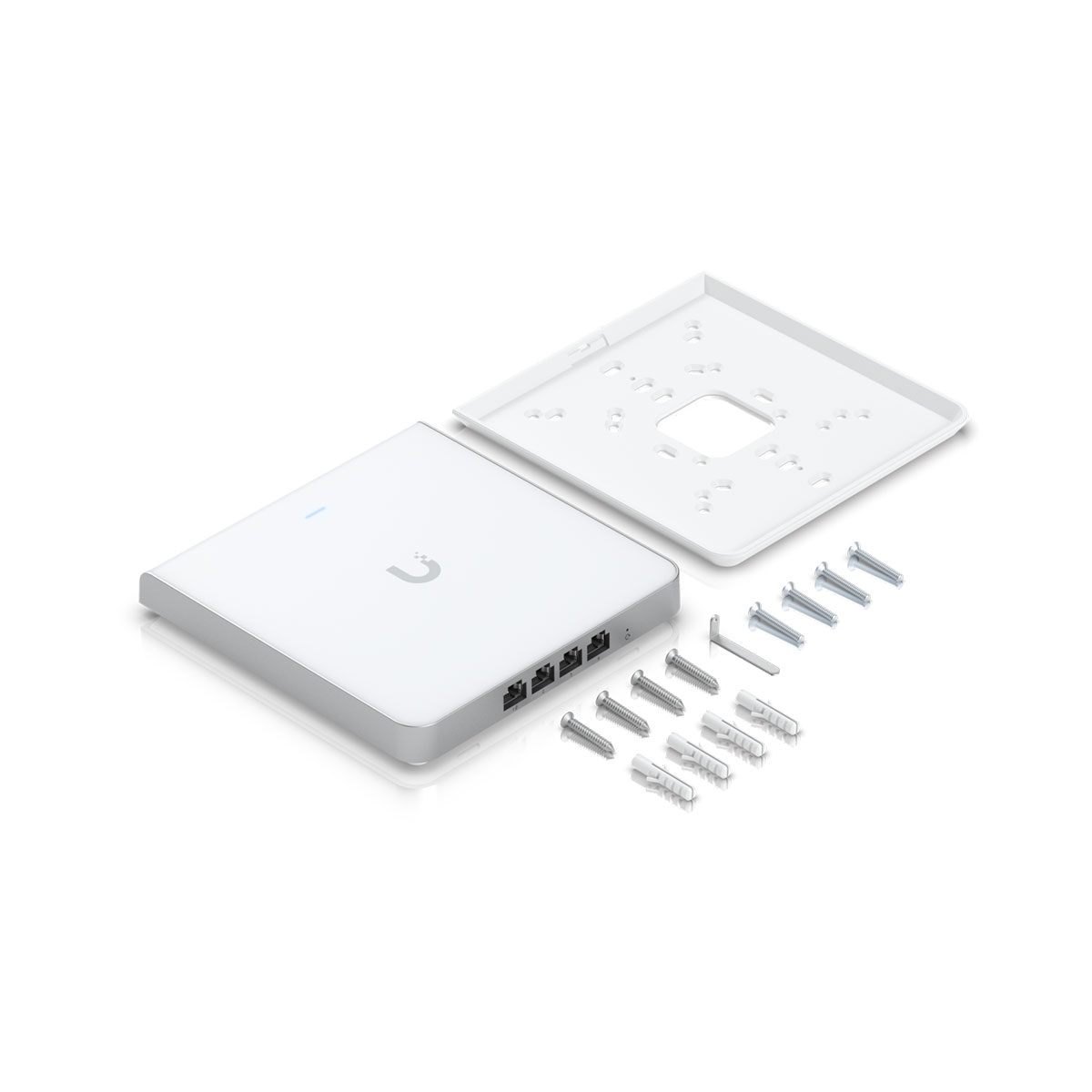 U6 Enterprise In-Wall is an access point designed for use in office spaces with high coverage density. The universal wall mounting bracket is ready for use with most commonly used wiring boxes worldwide.