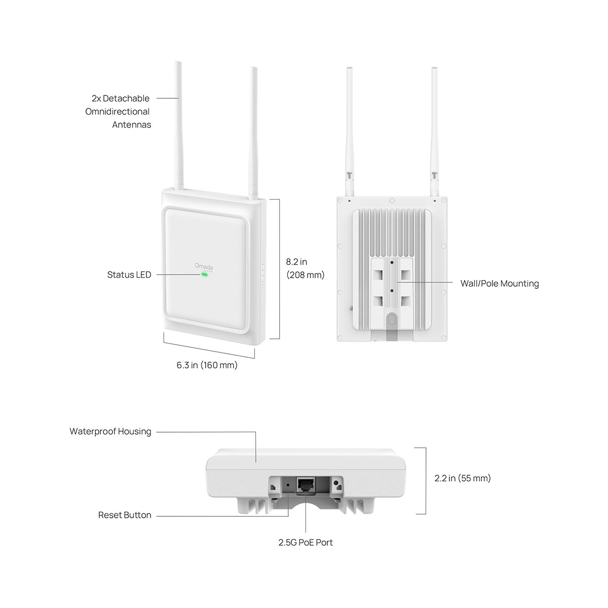 The EAP725-Outdoor features an IP66 weatherproof rating, ensuring reliable protection against heavy rain, dust, and harsh weather conditions.