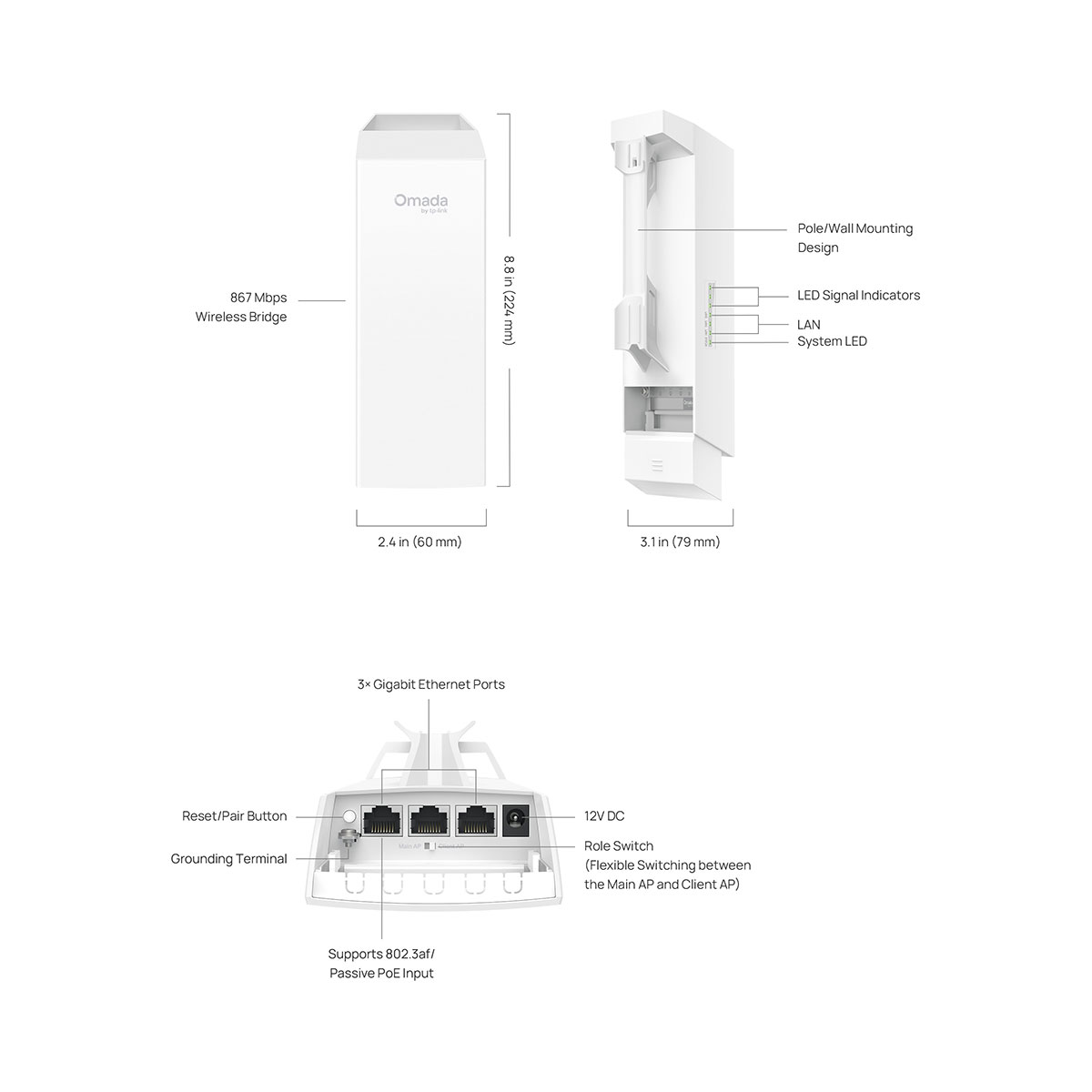 Supports Passive PoE for flexible deployment (adapter included).