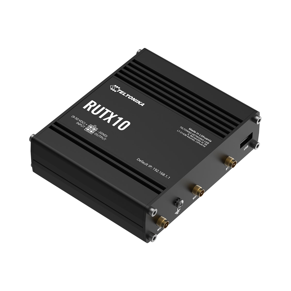 | Standard Package Contains | • Router RUTX10 • 18 W PSU • 2x Wi-Fi antennas (swivel, RP-SMA male) • 1x Bluetooth antenna (magnetic mount, RP-SMA male, 1.5 m cable) • Ethernet cable (1.5 m) • QSG (Quick Start Guide) • Packaging box |